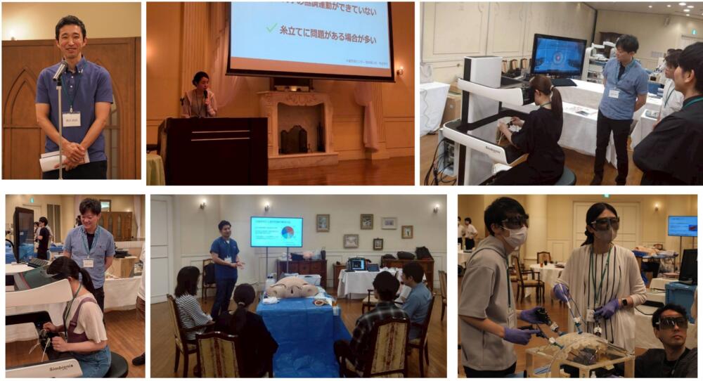 今回も、前回導入し大好評であったDa Vinciシミュレーターをはじめ、引き続き内視鏡(子宮摘出モデル)シミュレーター、分娩・内診シミュレーター、超音波シミュレーター、帝王切開子宮切開シミュレーターなど、多彩なトレーニング機材を用意しました。さらに、新たな取り組みとして、母体救命講習会形式のシミュレーション教育を導入し、また「内視鏡のいろは」についての特別講演も行いました。盛りだくさんの内容で、参加者の皆さんには頭と体を存分に使って学んでいただきました。